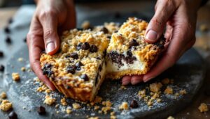 Quella che si prepara qui non è la solita crostata: la sbriciolata ha una texture tutta sua, con una base e una copertura di briciole friabili che stringono la farcitura senza mai comprimerla. La ricotta di buona qualità — preferibilmente vaccina o di pecora, secondo il gusto — fa da protagonista assoluta, alleggerita da pochissimi ingredienti. Le gocce di cioccolato fondente aggiungono contrasto e profondità. È il dolce delle domeniche pigre di marzo, quando si ha voglia di qualcosa di fatto in casa ma il tempo è poco. Basta tirare fuori la ciotola più grande e cominciare.